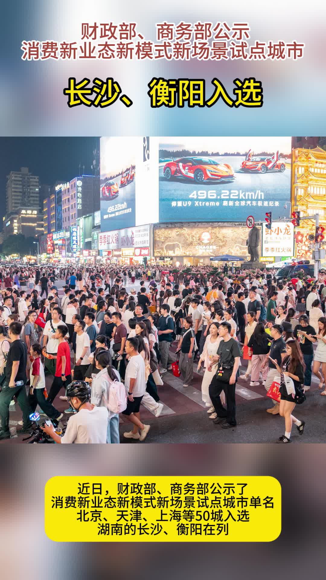 长沙入选!财政部、商务部公示消费新业态新模式新场景试点城市