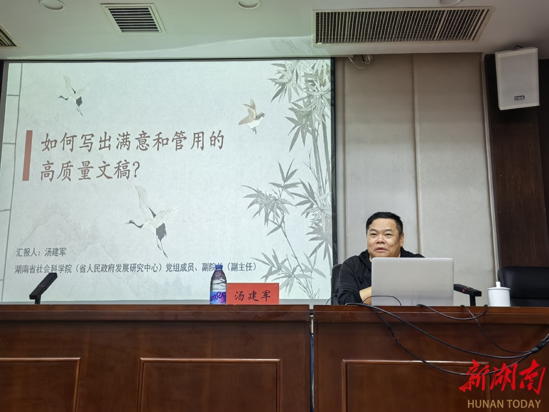 古人说:“读万卷书,行万里路;行万里路,不如阅人无数;阅人无数,不如名师指路”。本次培训聚焦文稿写作中的实际难点,特邀多位具有深厚理论功底与丰富实践经验的专家领导进行授课,为学员们带来智慧精华和深刻见解,课程层次分明、重点突出,更好助力学员在文稿写作上实现新飞跃。省社会科学院(省政府发展研究中心)党组成员、副院长、副主任汤建军以《如何写出满意和管用的高质量文稿》为题,围绕坚持学习+淬炼双轮驱动、坚持调研+积累两手抓、坚持独创+攻关双轨并行三个方面,带来了一堂生动精彩的实操课。湖南省委党校二级教授、享受国务院政府特殊津贴专家唐琦玉以《现代领导的沟通和管理艺术》为题,从现代领导的角色定位、沟通艺术、管理技巧等三个角度系统阐述了现代领导情境下有效沟通与科学管理的核心要义、方法技巧与实践路径。市政府办二级巡视员蒋集政围绕文秘人员的能力培养,分享了文字工作螺旋式进阶的三重境界,从工作态度、一专多能、自我超越等方面传授了文秘人员应具备的能力素养。培训期间,学员们积极与授课专家互动交流,结合工作实际提问求解。名师们不仅传授方法论,还注重回应具体困惑,在问答中帮助学员拓宽写作视野、打通思路堵点,破解写作难点,有效实现教学相长。
