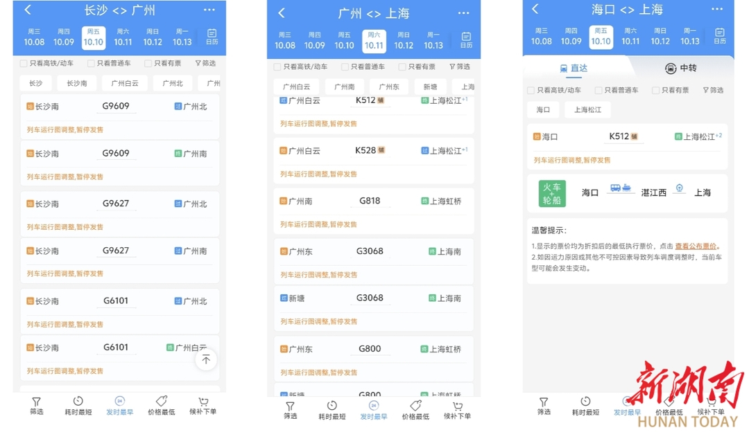 据了解,此次运行图调整涉及范围广,目前广东、湖南、海南等省份的列车运行正在陆续调整中。