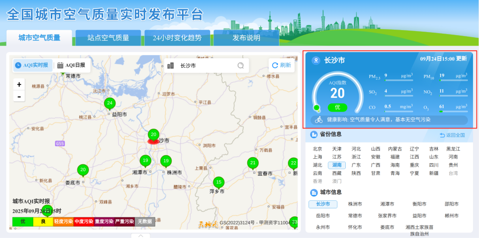 进入九月以来,长沙市目前保持空气质量优-良,尚未出现污染天气。在大家的共同关注和支持下,我们的空气质量治理工作取得了一定成效。截至2025年9月26日,PM2.5平均浓度为33.2微克/立方米,为历史同期最佳纪录,优良率整体波动向好。这背后,精准的监测数据为治理工作提供了有力的助力,同时也离不开每一位市民对环保工作的理解与配合。