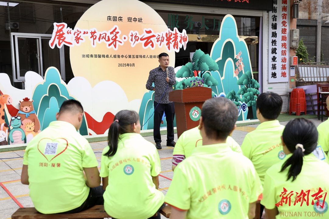 湖南日报·新湖南客户端9月29日讯(通讯员 黄小林 )“加油!加油!”9月28日上午,浏阳市凝馨残疾人服务中心内掌声、笑声、助威声此起彼伏。在省、市、县残联指导下,以“展‘家’节风采·扬云动精神”为主题的庆国庆·迎中秋暨第五届残疾人趣味运动会热烈举行。百余名残疾人、家属、志愿者和员工欢聚一堂,在运动中共享快乐与温暖。