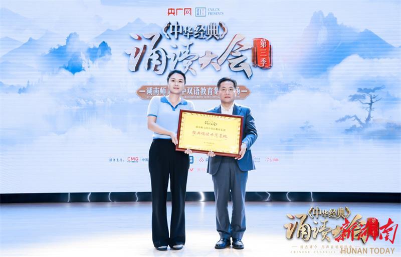 活动期间,央广网湖南频道还向湖南师大附中双语实验学校授予“经典诵读示范基地”牌匾。