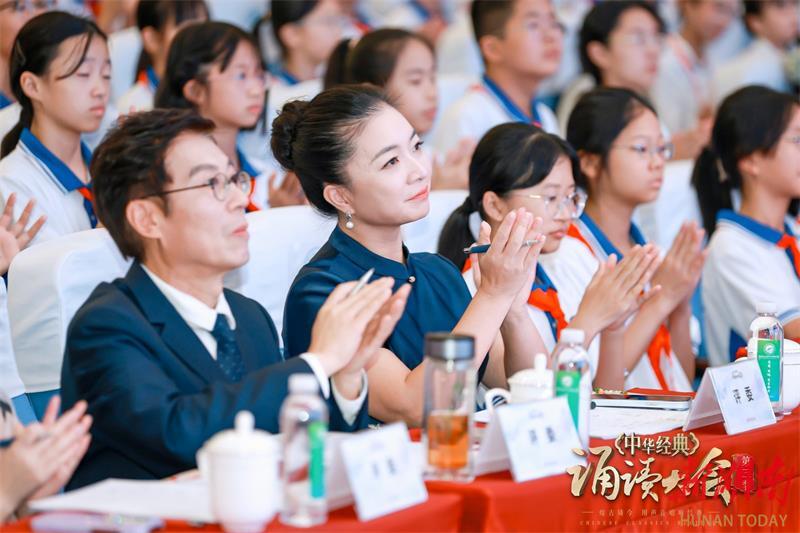 “‘中华经典诵读大会’这个舞台,不仅是竞技的赛场,更是交流与分享的园地。”湖南师大附中双语实验学校副书记、校长王瑛说,“中华经典诵读大会”与学校倡导并践行的“有趣、有爱、有生命力”的育人理念高度契合,愿今天的“诵读之约”,成为大家与经典对话的新起点,让琅琅书声响彻校园,更希望大家“品”经典、“用”经典,将经典中的智慧与当下的学习、生活连接起来,内化为自己独特的文化积淀和人格力量。