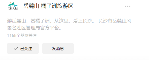 微信搜索并关注「岳麓山橘子洲旅游区」公众号