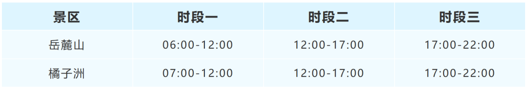 可提前3天预约(岳麓山开放时间:06:00—22:00;橘子洲开放时间:07:00—22:00)