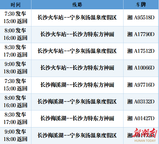 湖南日报·新湖南客户端9月30日讯(记者 李曼斯 通讯员 李泳萱)10月1日-10月8日,宁乡将开通从长沙至宁乡灰汤温泉度假区、长沙方特东方神画的旅游专线,游客可免费搭乘直达景区。
