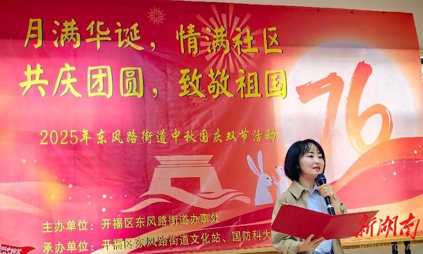 为欢庆国庆中秋佳节,弘扬中华优秀传统文化,丰富居民精神文化生活,9月28日上午,长沙市开福区东风路街道办事处精心策划的“月满华诞,情满社区——共庆团圆,致敬祖国”主题庆祝活动在国防科大社区举行。