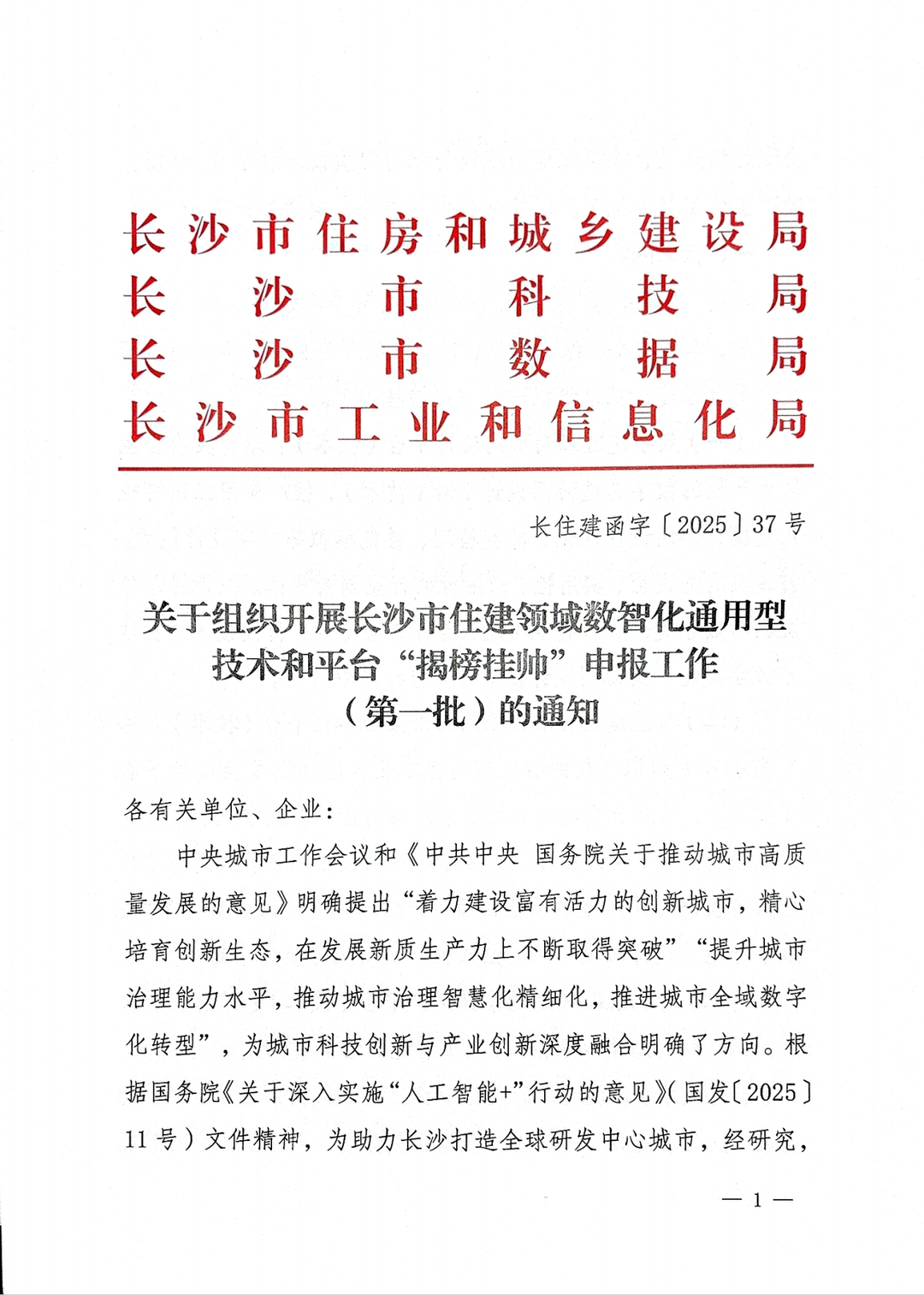 本次申报工作遵循“公开征集、自愿申报、公平评审、择优支持”的原则,申报截止时间为2025年10月24日。长沙市住建局相关负责人表示,我们要以人工智能为引擎,在住建领域掀起一场深刻的科技革命和产业变革,推动长沙在智能建造、数字住建领域抢占全国制高点,为城市高质量发展注入强劲、持久的新动能。希望通过此次“揭榜挂帅”,激发企业创新活力,汇聚全球智慧,破解住建领域发展难题,为长沙城市建设注入新动能,推动长沙在智能建造、数字住建领域走在全国前列。