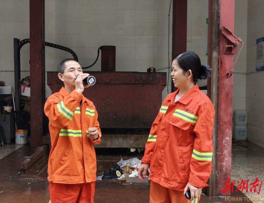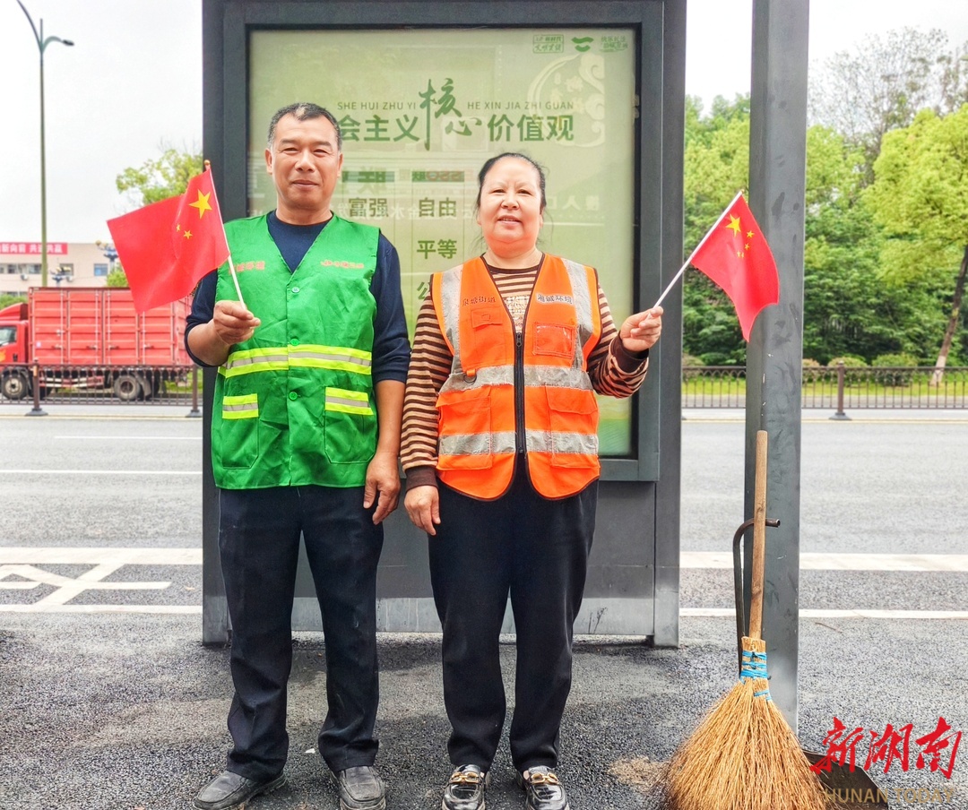 像余习纯、龙燕萍一样的“橙色夫妻”坚守在假期岗位的还有孙艳辉、周建军夫妇。作为长沙县劳动模范、湘诚环境东片区长,孙艳辉表示:“节假日人流量大,垃圾量也增加,我们更要认真打扫,让返乡探亲和外地游客看到泉塘最美的一面。”