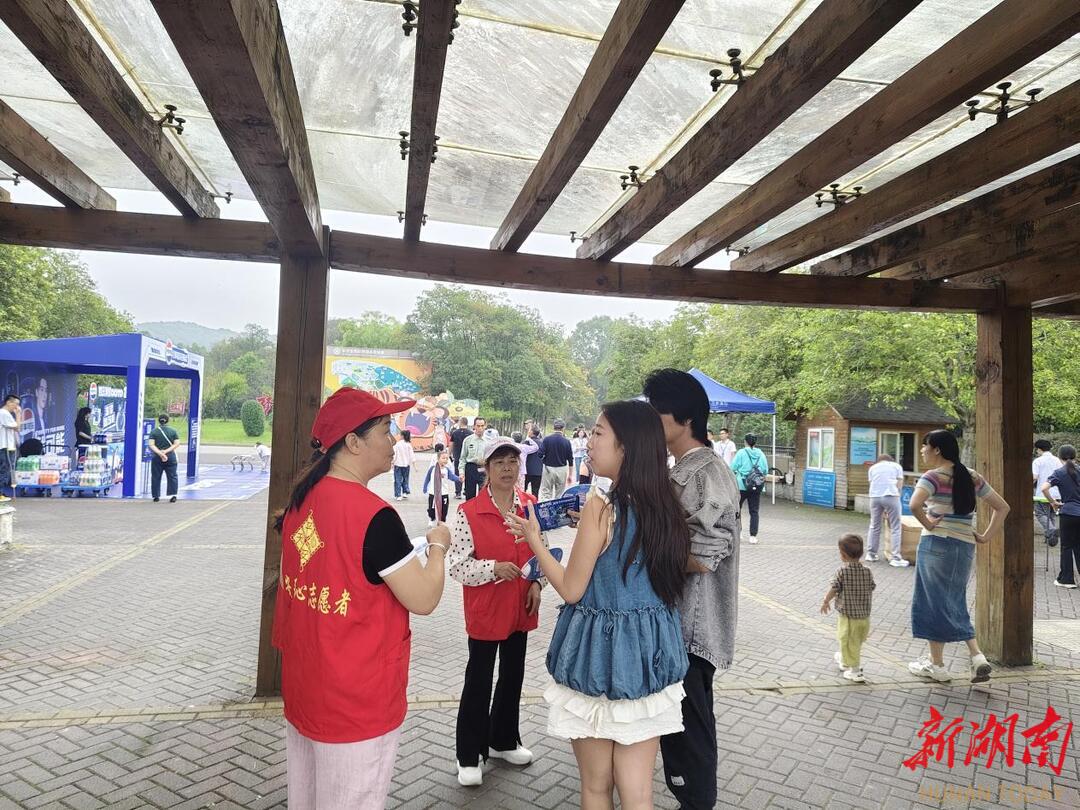 湖南日报·新湖南客户端10月1日讯(通讯员 易卓 吴笛)金秋送爽,丹桂飘香,国庆与中秋的双节暖意里,长沙市生态动物园迎来了游客高峰。为应对激增的人流车流,保障游客安全、顺畅的游园体验,长沙市天心区暮云街道弘高社区迅速集结了一批社区志愿者,他们身着红马甲,活跃在动物园周边的主要路口、入口及重要区域,用细致的文明引导与交通劝导,将“志愿红”晕染成节日里最亮眼的风景。