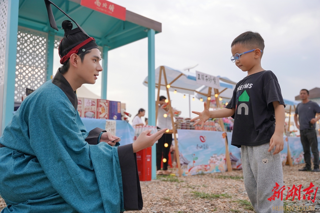 与此同时,特色渔市热闹非凡,文和友小龙虾、开天渔庄、湘柳源大闸蟹等乔口本土特色农产好物琳琅满目,中华老字号火宫殿、湖南老字号南北特、王胖子炒货等老字号等纷纷“下乡赶集”,靖港郭福娭毑小钵子甜酒等望城周边网红品牌也悉数亮相。投壶、套圈等古风游戏区笑声不断,吃喝玩乐一站式满足游客需求。