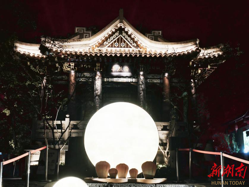 在天心阁,踏入一场时空之旅。一轮巨大明亮的圆月展板静立,配合错落有序的灯光布置、古典的园林与楼阁,沿着阶梯而上恍若身入“奔月”的神话场景,吸引众多游客打卡。进入景区,一场“星城传说・文脉长歌”——穿越之我在天星阁当状元郎的沉浸式剧游,带领游客穿越回大明长沙府,体验古代学子求学赶考的历程。活动剧本参考明代传奇话本,设蹴鞠、射箭等任务模拟科举考试,让历史鲜活起来,更为参观游览增添趣味性。