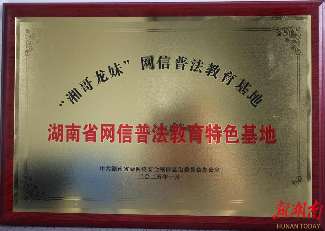 “湘哥龙妹”网信普法教育基地获评湖南省网信普法教育特色基地 ,为街道网信普法教育工作增添一抹亮色。