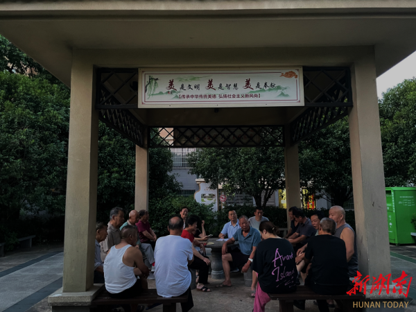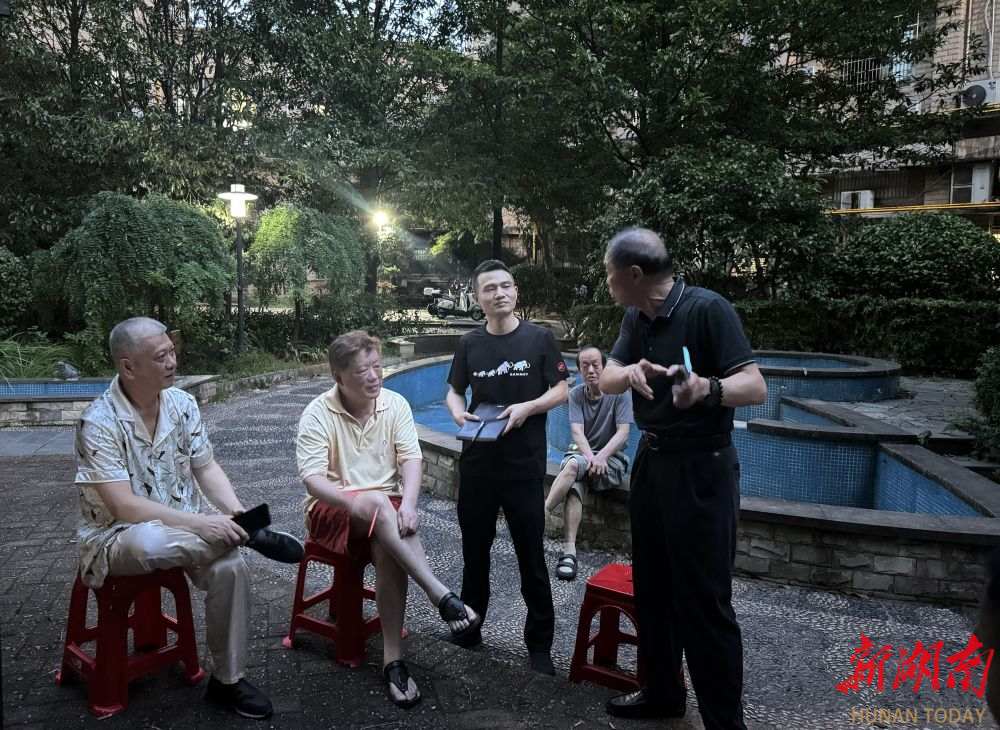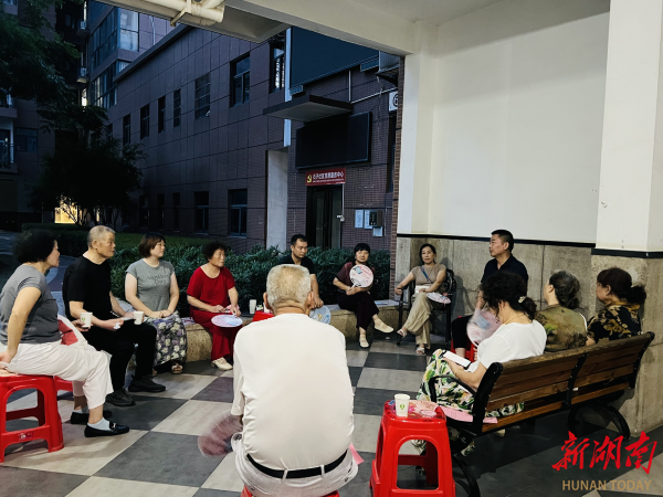 在湘瑞家园,小区凉亭成了夜话现场,居民摇着蒲扇,与社区干部、物业围坐一圈,停车秩序、老人出行等数十条诉求与“金点子”不断涌现。