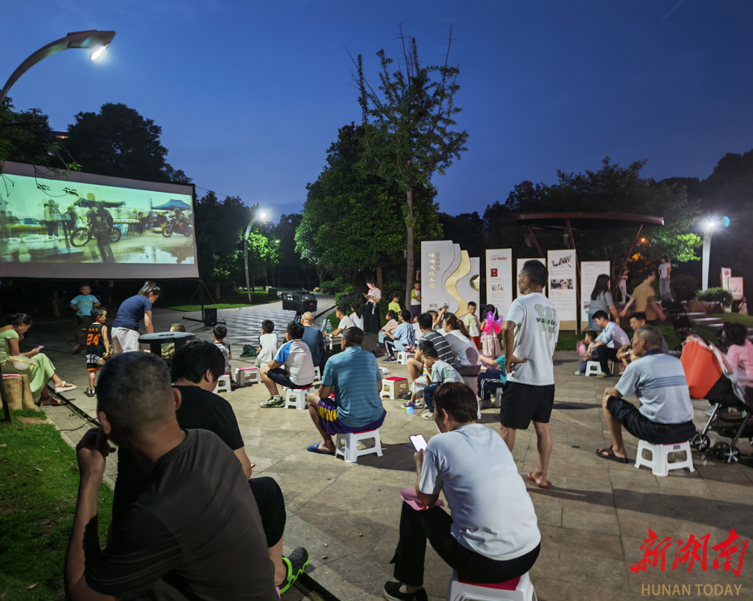 湘绣社区将夜话与“红色电影进小区”相融合。