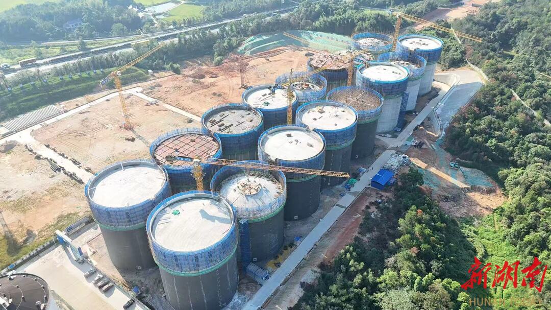 湖南日报·新湖南客户端10月23日讯(记者 王茜 通讯员 张庆 谌松浒)吊装设备精准作业,钢筋碰撞声铿锵有力,建设者们挥汗如雨……10月22日,走进位于长沙县开慧镇的湖南省储备粮管理有限公司开慧库区建设工地,16座浅圆仓如钢铁巨人般拔地而起,湖南省规模最大的单体国有粮库建设已进入冲刺阶段。