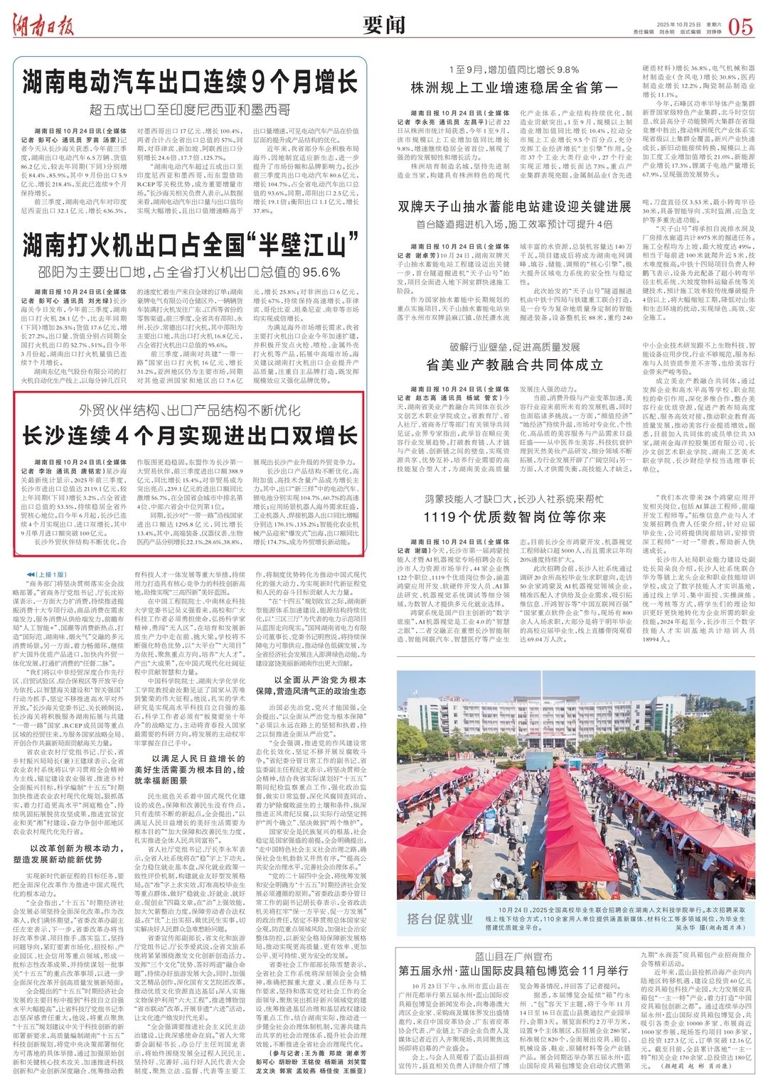 湖南日报10月24日讯(全媒体记者 李治 通讯员 唐铭宏)星沙海关最新统计显示,2025年前三季度,长沙市进出口总值达2119.1亿元,较上年同期(下同)增长3.2%,占全省进出口总值的53.5%,持续稳居全省外贸核心地位。自今年6月起,长沙已连续4个月实现出口、进口双增长,其中9月单月进口额突破100亿元。