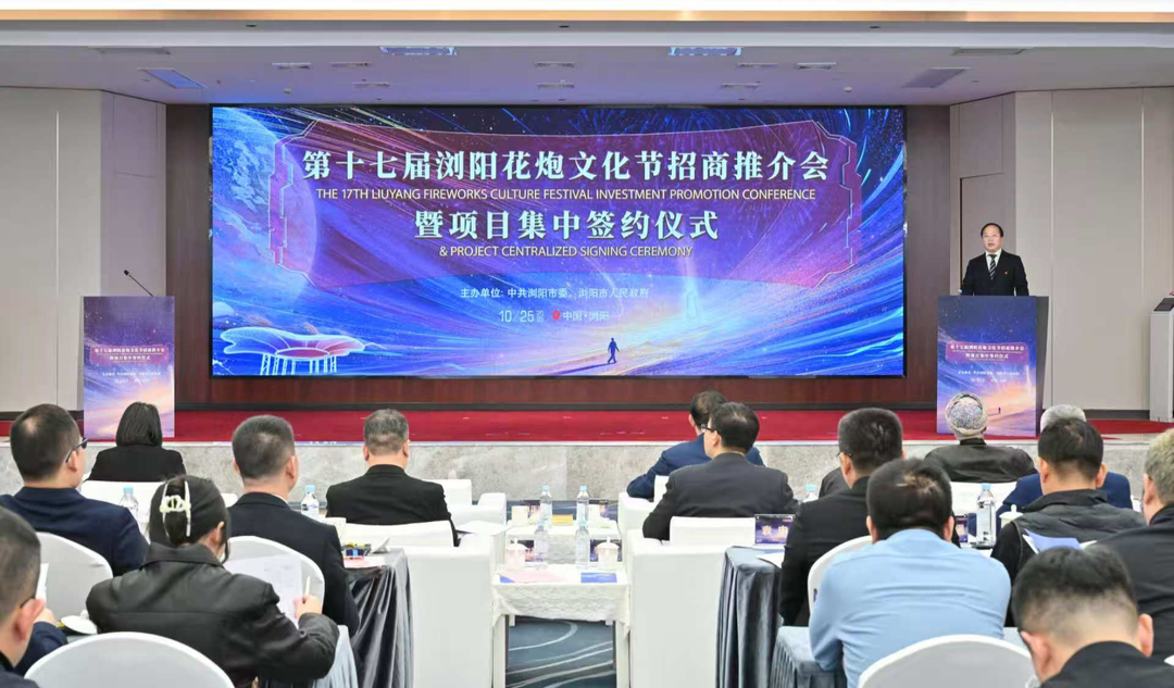 湖南日报·新湖南客户端10月25日讯(记者 王文 )今天下午,第十七届浏阳花炮文化节招商推介会暨项目集中签约仪式举行,13个高质量项目集中签约,项目投资总金额达23.5亿元。
