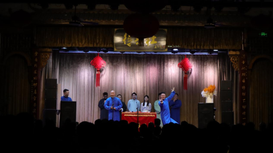 作为长沙首家每日上演相声的茶馆,得乐社当晚的表演堪称精彩。开场演员模仿腾格尔的独特嗓音,瞬间点燃全场气氛;词语接龙环节巧妙串联观众互动,台上台下笑声不断;压轴演员奇志的方言演绎,更是将南派相声的“在地化”魅力展现得淋漓尽致。
