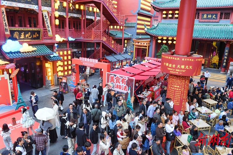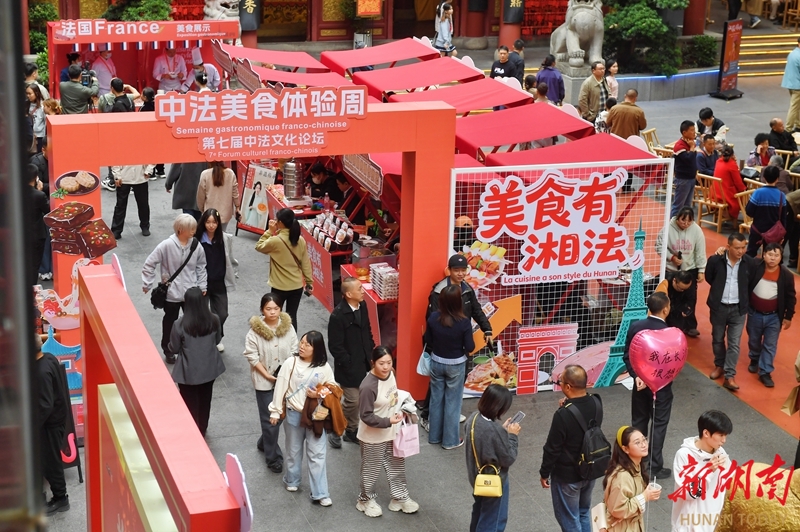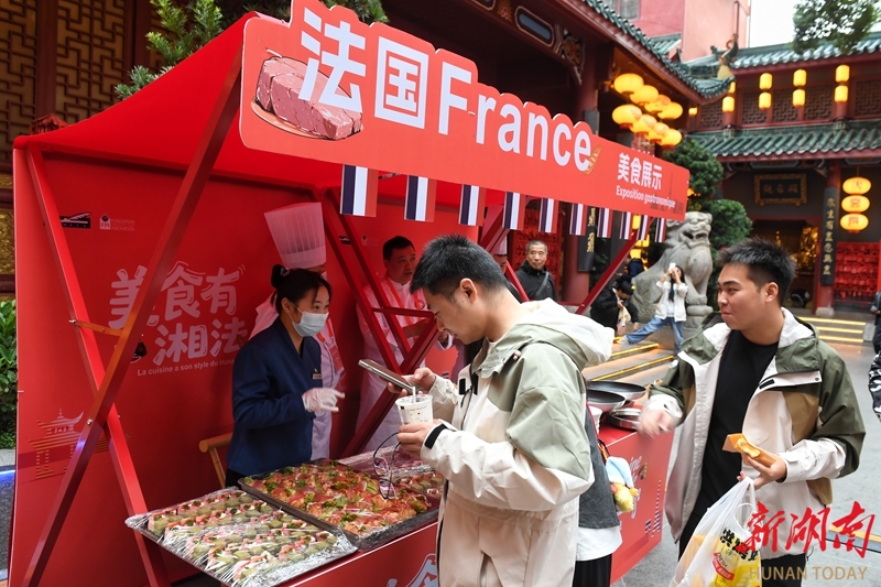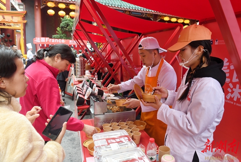 11月2日,“美食有‘湘法’”中法美食体验周活动在长沙坡子街火宫殿启动。现场不仅准备了长沙小吃、法式美馔与湘味美食创意融合菜,还有长沙弹词、湘剧、花鼓戏、皮影戏等非遗演出,吸引了众多市民、游客前来打卡。