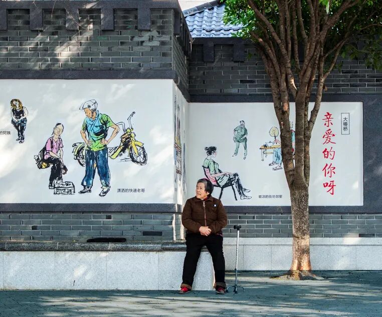 这幅文化墙的诞生,始于一场“接地气”的市民寻访。今年6月17日,在著名建筑师杨建觉的策划下,人文记者徐徐与同事顶着35℃高温,在大椿桥及周边随机邀请市民拍照,征得同意后记录下生活瞬间。