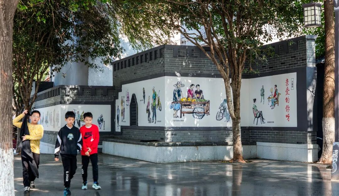 如今,文化墙已成为社区“活力枢纽”:黄昏时散学的孩子驻足观看,老人们在墙下长凳闲坐聊天,还有市民在此打太极、踢毽子。“过去文化墙多刻历史名人,这次画的是我们身边人,看着就亲切。”常来公园的娭毑说。