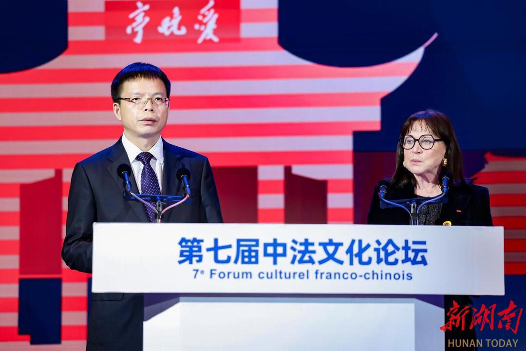 湖南日报·新湖南客户端11月4日讯(记者 金慧)11月4日下午,第七届中法文化论坛在成功举办一系列文化交流活动后迎来闭幕仪式。欧美同学会秘书长李民、副秘书长滕剑峰,湖南省委统战部副部长向恩明,长沙市委常委、市委统战部部长刘汇,长沙市副市长钱丽霞,法国驻华大使馆文化、教育与科学事务公使衔参赞艾文鸿,法国驻武汉总领事乐朗儒,法国展望与创新基金会总干事埃马纽埃尔·佩雷斯等中法两国嘉宾出席闭幕式。闭幕式由长沙市副市长周志凯和巴黎参议员凯瑟琳·杜马斯共同主持。
