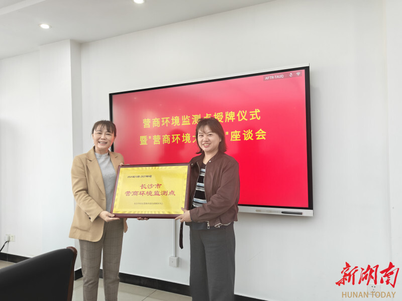 星沙街道给企业授牌“长沙市营商环境监测点”。星沙街道供图
