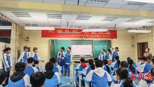 湖南日报·新湖南客户端11月7日讯(通讯员 廖玲)近日,“同课异构探教法,红色乐韵育初心”主题音乐教研展示活动,在邵阳县塘渡口中学多媒体教室举行。活动由长沙市天心区支教队、邵阳县教育局与塘渡口中学共同举办,特邀雅礼外国语学校音乐名师廖玲老师主持教学团队,展现了天心支教力量在推动区域美育共建中的示范引领作用。