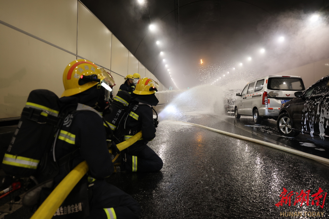 11月8日7时许,长沙市重要过江通道营盘路隧道发生汽车追尾事故,随后车辆焚烧起来!没过多久,南湖路隧道接到警报——地下水禁漫进路面,外面的雨水也在向里面灌流……不过,这都不是真的,是2025年城市隧道突发事件综合应急演练活动。