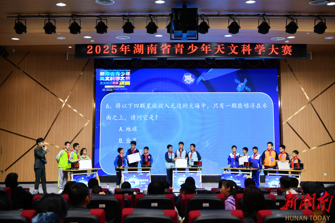 10月31日,是神舟二十一号携梦出征、奔赴苍穹的航天高光时刻,也是缅怀“中国航天之父”钱学森先生逝世16周年的纪念日。就在这承载着探索精神与家国情怀的一天,2025年湖南省青少年天文科学大赛决赛在湖南省地质博物馆拉开帷幕。经过多轮激烈比拼,这场汇聚全省天文爱好者的年度盛宴圆满收官,同步开启的线上直播吸引近80万观众云端相聚,共同见证少年追光者与星空的深度对话。