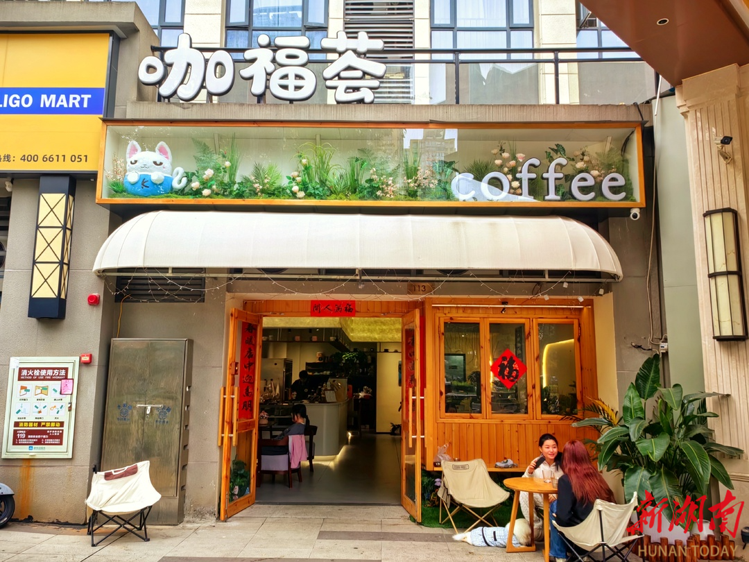 午间的阳光透过玻璃窗,洒在“咖福荟”简约的木桌上。11月7日中午12点10分,谢女士和同事鲁女士像往常一样,推开这家位于长沙县泉塘街道板桥社区漓湘悦小区外围的咖啡店,熟络地点单:“老样子,一杯冰美式,一杯茉香橄榄冷萃!”