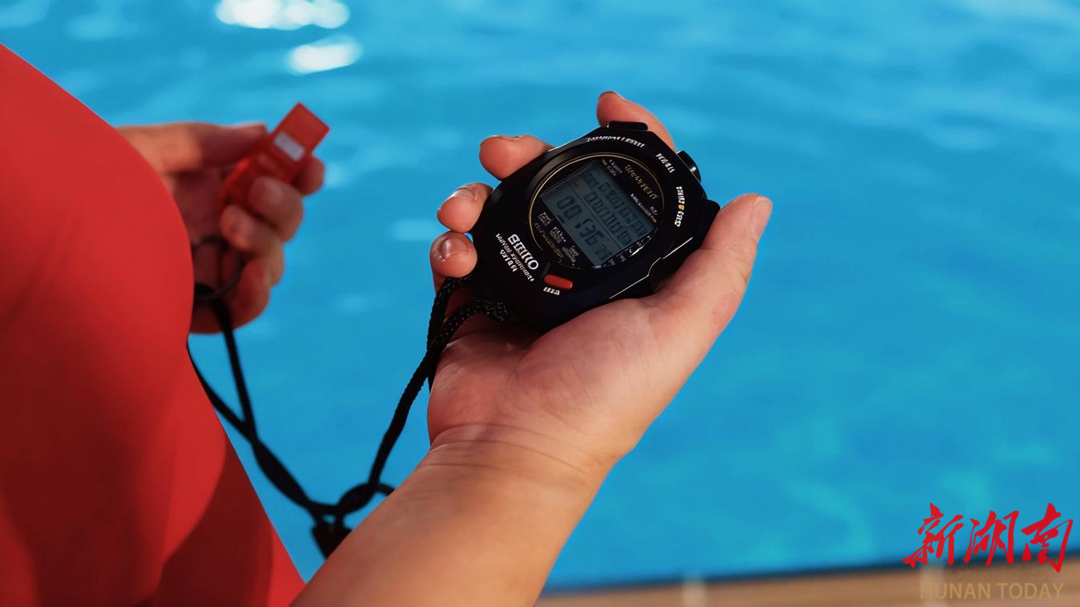 掐着秒表的手用力一挥,划出一道短促有力的弧线,在队员手指触碰池边的同时掐表。这个动作龚茜每堂训练课要重复几十次,充满了力量和美感。