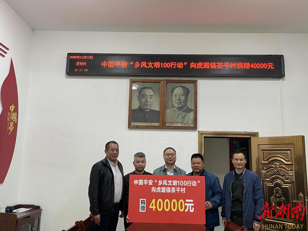 湖南日报·新湖南客户端11月14日讯(通讯员 邓育珍)11月13日,中国平安财产保险股份有限公司茶陵支公司(以下简称“平安财险茶陵支公司”)一行前往虎踞镇茶干村,开展乡风文明100行动助力乡村振兴捐赠活动,并与村“两委”举行座谈,共同探讨盘活村级资源、推动农业产业发展的有效路径。