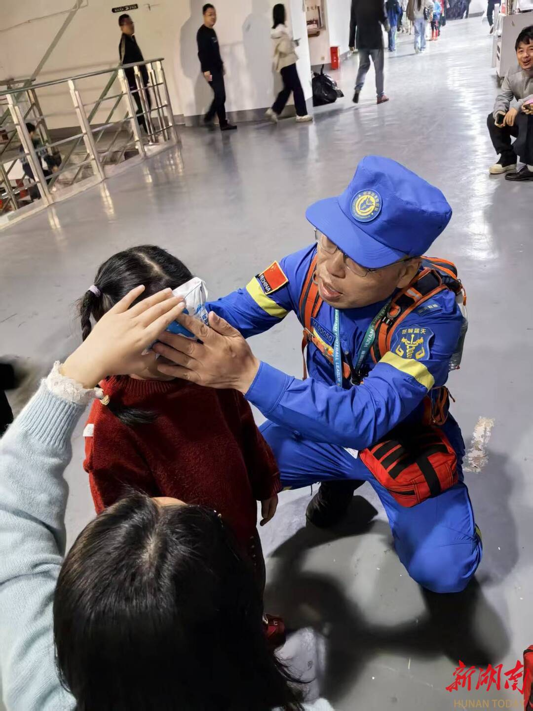 岳麓蓝天救援队随身携带AED除颤仪、葡萄糖水、外伤急救包分区域巡逻,看台东南西北的38名骨干队员每15分钟完成一次点位巡查。一位穿汉服的女生在观赛现场突发脚踝扭伤,队员3分钟内完成了冰敷包扎。小球迷意外磕碰,急救队员蹲身处理伤口的画面,让不少观众自发鼓掌。