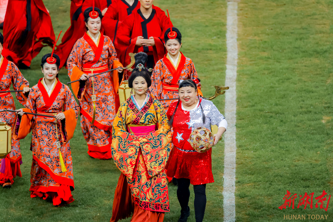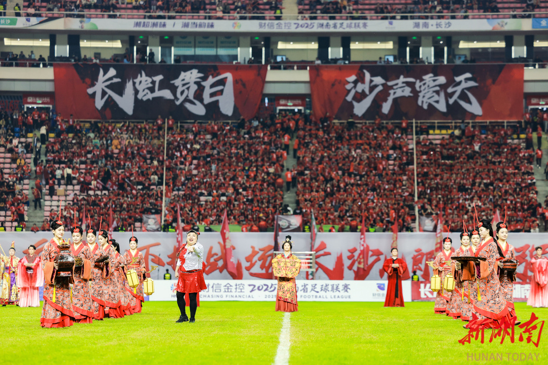 辛追夫人与笑星何晶晶相约“追球”,湘剧高腔演绎伟人词章;绿茵场上的文艺演出精彩纷呈,场外演艺新空间更焕发蓬勃活力……11月14日晚,长沙与益阳的湘超联赛小组赛现场,体育激情与湖湘文脉,完成了一次惊艳的“双向奔赴”。