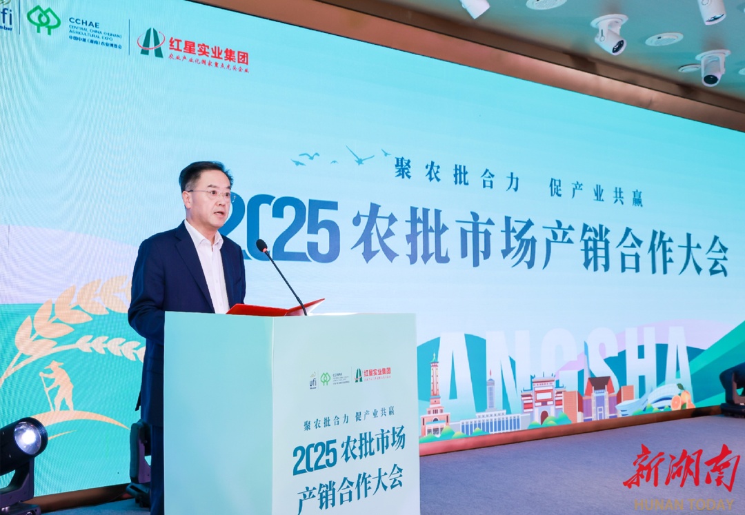 湖南日报·新湖南客户端11月14日讯(记者 曾楚禹 万丽君 范远志 通讯员 徐磊)11月14日,作为第二十六届中国中部(湖南)农业博览会的主体活动之一,由农业博览会组委会和红星实业集团主办的2025农批市场产销合作大会举行。本次大会以“聚农批合力,促产业共赢”为主题,汇聚了15家国内头部农产品批发市场负责人,以及来自全国200多名特色农产品优势区的政府代表、农业龙头企业及行业专家,共商产销对接新机制,共绘农业高质量发展新蓝图。