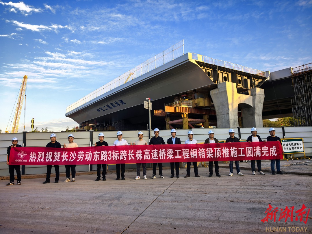 湖南日报·新湖南客户端11月15日讯(记者 谢璐 通讯员 张家 保汪琳)11月14日下午,中交二航局承建的长沙经开区劳动东路(黄兴大道-龙峰大道)道路工程3标段项目传来好消息:继主线桥、右辅道桥钢箱梁之后,左辅道桥钢箱梁顺利顶推完成,标志着项目钢箱梁顶推施工全部完成。这些重达上百头成年大象重量的“钢铁大块头”,在建设者手中实现了毫米级的精准移动,为这条交通动脉贯通迈出关键一步。
