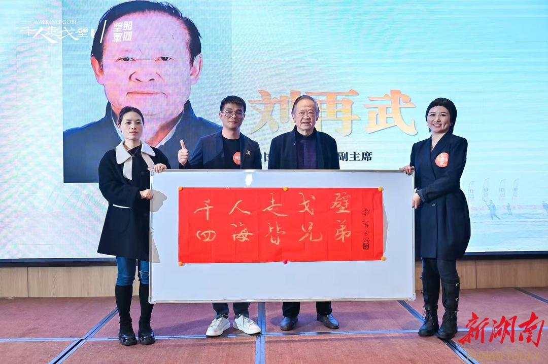 湖南日报·新湖南客户端11月15日讯(通讯员 胡富君 刘孝丹)日前,长沙市72岁的湖南省信访局退休干部,中国书画家协会副主席刘再武,挥毫泼墨一幅“千人走戈壁,四海皆兄弟”在长沙第十八届千人走戈壁英雄会(长沙站)暨感恩分享会上,向归来的湖南100多名成功勇士贺词。