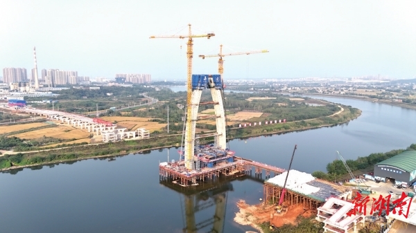 如同人之生长要先强筋骨,城市生长也要先拉伸交通骨架,拓展城区空间。宁乡市委市政府根据“一年打基础、三年见成效、五年初成型”的时序目标,着力构建“两长两纵两横两路”综合交通网。目前,滨江路、沿河北路、华强北延线、玉潭东路、沩东大道等“两纵两横”竣工通车。作为综合交通网重要组成部分的发展大桥,不仅是东城组团与宁乡经开区联系的交通要冲,更是城区东南部的重要城市主干路。大桥现正在进行主塔施工,预计2027年1月完工后,这道横跨沩水的“长虹”将成为城市新地标。
