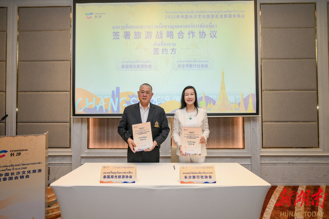 活动现场,长沙市旅行社协会与泰国观光旅游协会签署旅游战略合作协议,通过建立协会间长效合作机制,推动两地旅游业资源共享、市场互促。长沙将以此次活动为契机,通过政策互享、线路互通、客源互送,进一步加强与泰国的文旅交流合作,针对泰国及经泰赴长的欧美游客,升级多语言导览、国际支付便利化等服务,联合开发跨境联程产品,把240小时过境免签政策的红利转化为实实在在的入境游增量,让长沙成为东南亚及欧美游客入境中国的重要目的地。