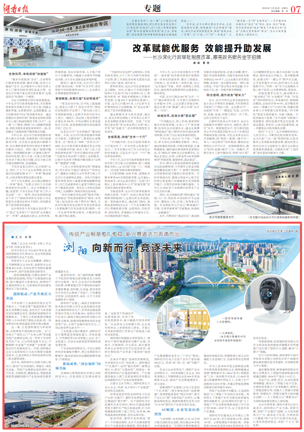 传统产业的数字化蝶变,正是浏阳推进“人工智能+”行动的生动实践。浏阳将人工智能产业作为推动高质量发展的战略抓手,出台《浏阳市打造“人工智能+”产业发展县域新高地三年行动计划(2025—2027年)》,全力竞逐未来产业赛道。