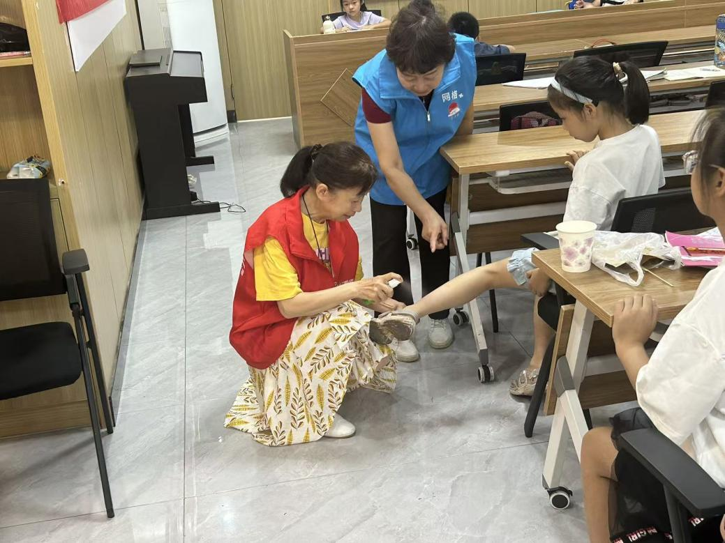 (“红、蓝”管家在“红色暑期成长营”社区“路尚”班做志愿者)