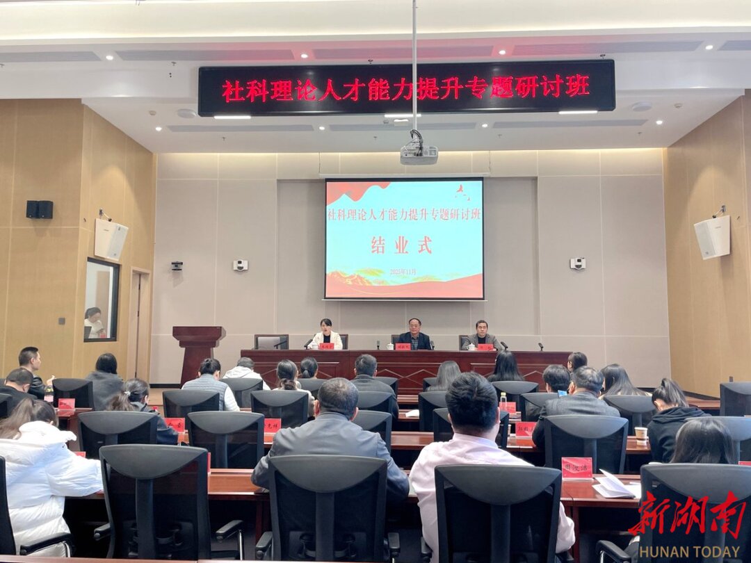 湖南日报·新湖南客户端11月29日讯(记者 陈新 通讯员 郭凤湘)11月28日,为期5天的长沙社科理论人才能力提升专题研讨班在此圆满举行结业仪式。长沙市委党校(行政学院)副校长胡振军,长沙市社科联(院)科研组织处处长邓旺出席结业式,宁乡市委党校副校长朱锡宁主持仪式。来自长沙市、株洲市、湘潭市、龙山县及省、市相关单位的45名中青年社科理论工作者,与市社科联(院)、市委党校(行政学院)的工作人员齐聚一堂,共同见证这段满载收获与成长的学习旅程画上圆满句号。