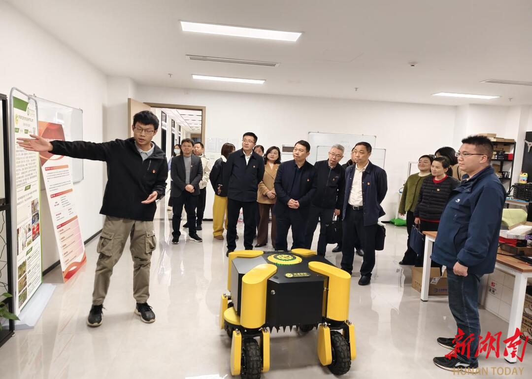 在湖南尧康智能装备有限公司,大学生创业者展示了新能源全向轮式智能割草装备等产品。这家 2024年底成立的企业,凭借11项国家专利、50 万元大学生创业基金融资成功登陆湖南股交大创板,其“通用底盘 + 功能模块”的农机生态模式备受行业关注。