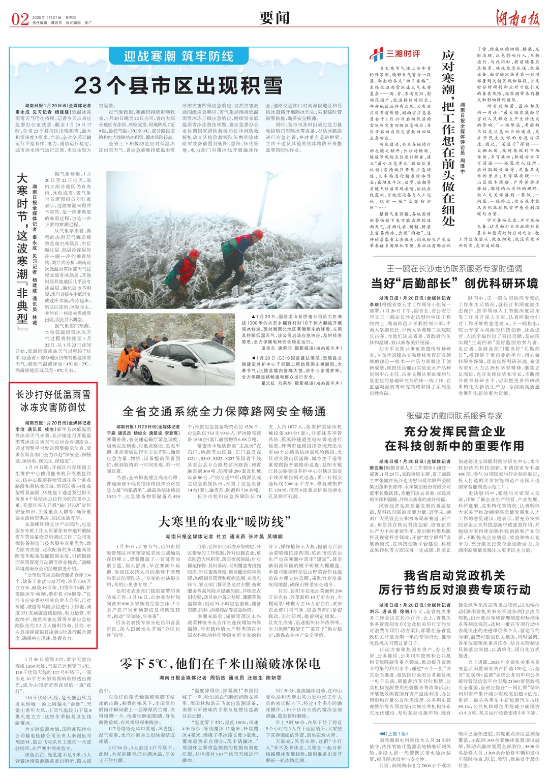 湖南日报1月20日讯(全媒体记者 李治 通讯员 桂生)新年首次低温雨雪冰冻天气来袭。长沙接连召开低温雨雪冰冻灾害天气应对会商调度会,通过预警平台发送预警提示信息,要求各级各部门全力以赴“保安全、保畅通、保供电、保民生、保稳定”。