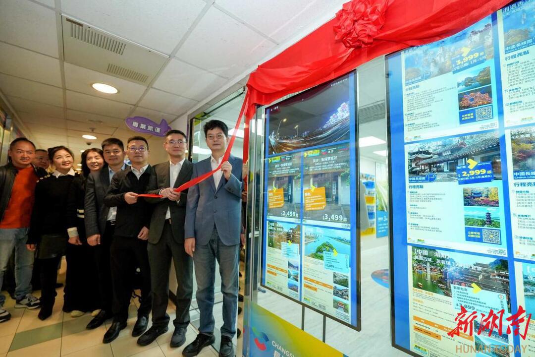 湖南日报·新湖南客户端1月22日讯(记者 金慧)今天,由长沙市文化旅游广电局与香港龙头旅游企业——香港专业旅运集团携手打造的“快乐长沙 韵味星城”长沙文旅首家主题形象店,在香港专业旅运铜锣湾分店正式营业。活动现场,长沙市人民政府副秘书长罗予武、长沙市委宣传部副部长,市文旅广电局党组书记、局长易鹰、长沙市文旅广电局党组成员、副局长余岚和香港专业旅运集团行政总裁高郑杏芬共同为门店揭幕。