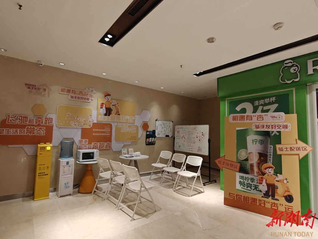建设新就业群体“爱心驿站”,与湖南打造年轻人友好省份的目标高度契合。裕南街街道积极保障骑手等新就业群体合法权益,持续加强淘宝闪购红色之家站点建设,其中,保利国际站是全省首个外卖骑手党支部的阵地,也是首个建在骑手站点一线的红色之家。作为全区首批试点街道,率先落实骑手服务与基层治理合伙人制度,扎实推动这项民生实事落地见效。打造相遇有“杏”骑手友好空间,探索形成新就业群体参与基层治理的“裕南模式”,城市治理焕发新的生机。