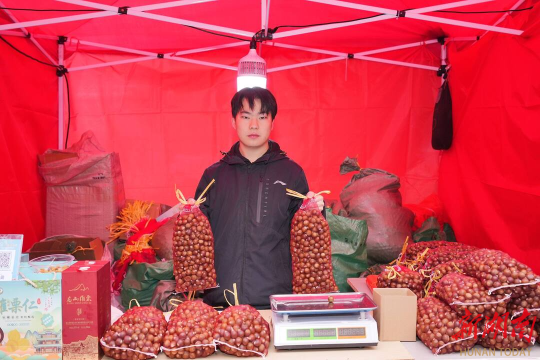 记者现场看到,30余个展位上,产品琳琅满目:饱满金黄的里耶脐橙堆成小山,洁白浑圆的龙山百合已晒干成型,油亮红润的腊肉悬挂成排,一袋袋锥栗整齐堆垒,手工糍粑还冒着热气……“这些不只是年货,更是我们龙山人的‘希望果实’。”龙山县政府相关负责人介绍,此次精选的200多种产品,均来自当地合作社和农户。