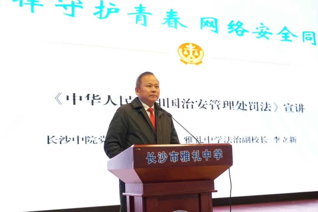 为筑牢青少年网络安全防线,提升法治素养与自我保护能力,1月30日,长沙中院党组书记、院长李立新作为法治副校长参加雅礼中学休学典礼,并以“法律守护青春 网络安全同行”为题,为全校3000余名学生讲授法治专题讲座。